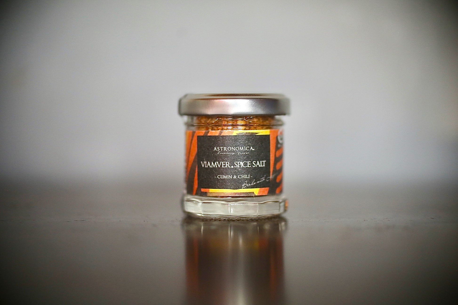 クミンと唐辛子、Viamver Saltのベーシックなスパイスソルト。野菜のマリネやカレー、肉魚料理など汎用性が高く、他のスパイスを加えてアレンジすることも。