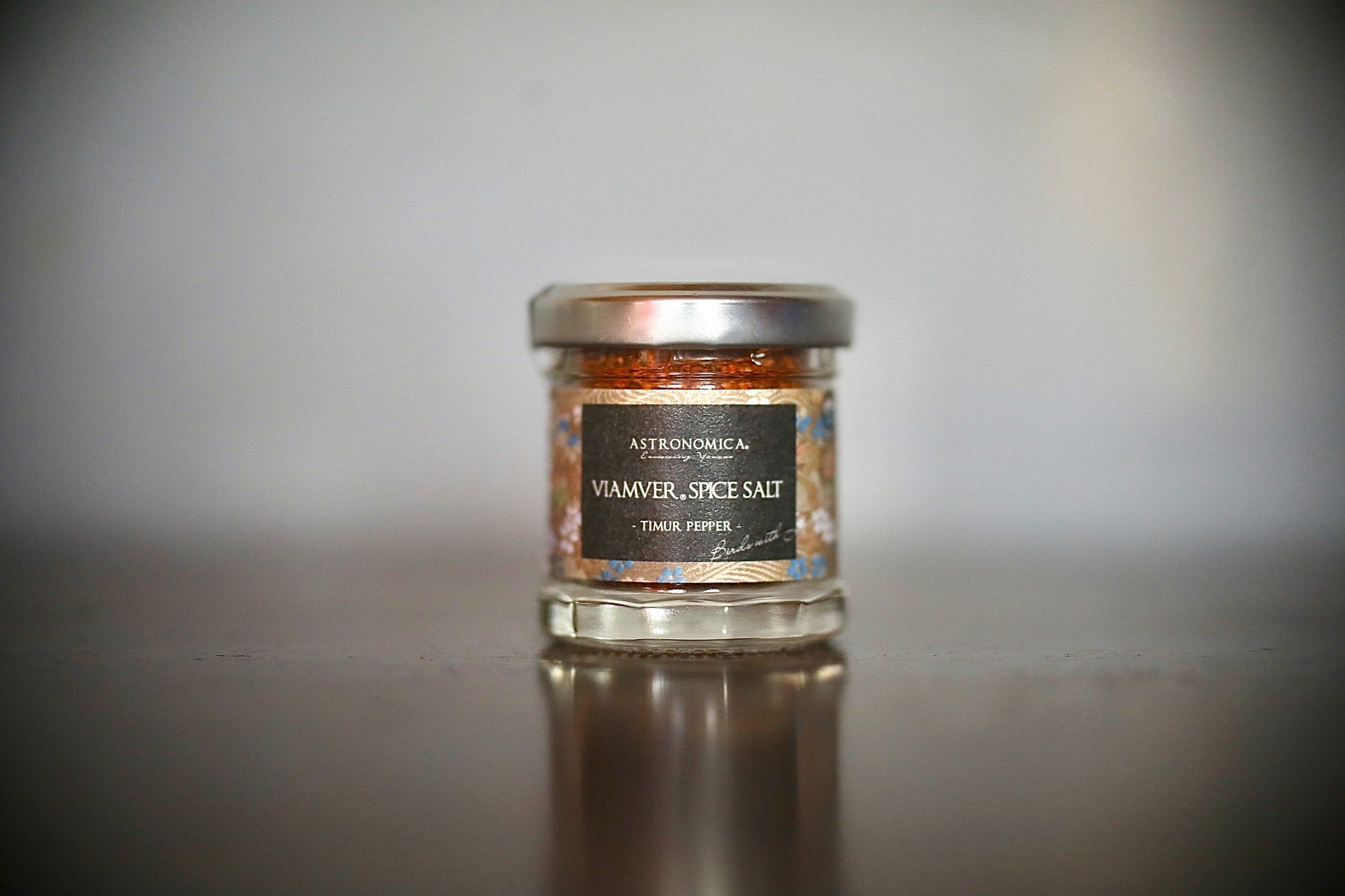 ネパール山椒とViamver Saltを組み合わせたうま味のあるスパイスソルト。和山椒と比べ柑橘のようなフルーティな香りが特徴で、ジビエなどの肉料理をはじめ、あらゆる料理に合わせやすく、少量でも料理が本格的に。