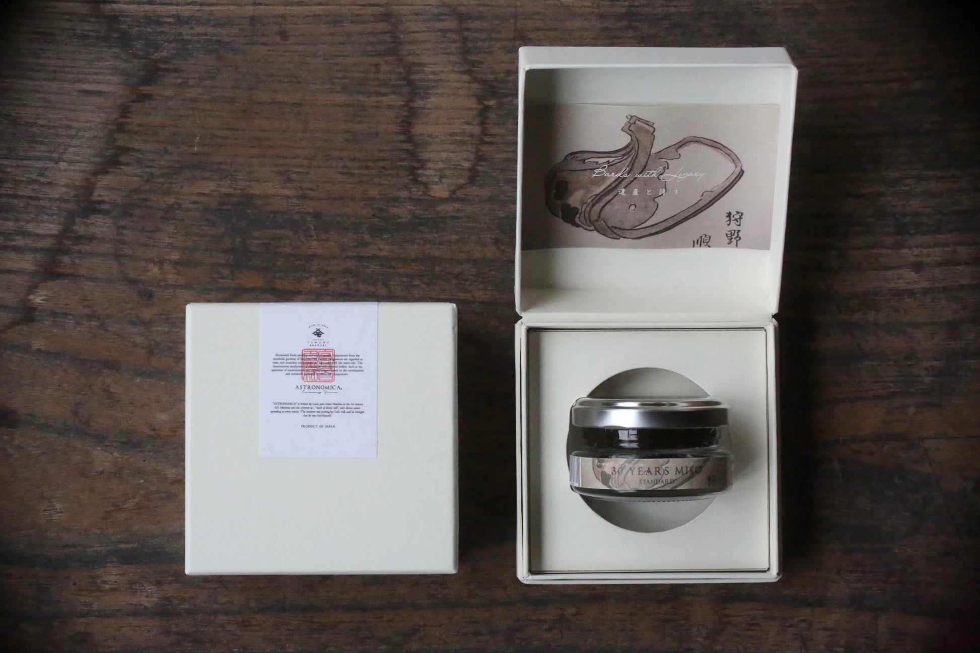 味噌の常識を超える熟成期間30年の味噌。30年の時間で実現した発酵と化学反応で生まれた唯一無二のコクと酸味。チョコレートのようやカカオのような風味と奥行きのある味わいはスイーツにもご使用できます。