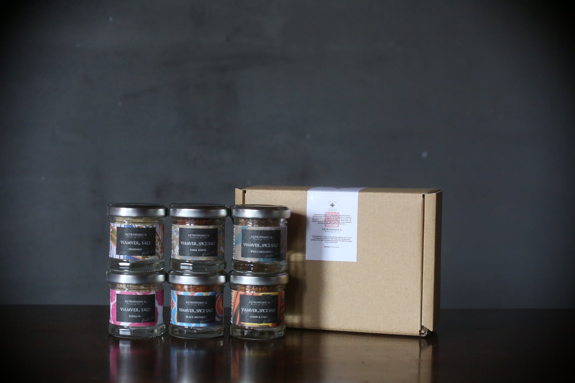 内容:ヴィアンヴァーソルト(スタンダード・ブイヨン)、ヴィアンヴァースパイスソルト(ティムールペッパー・ワイルドカルダモン・ブラックマスタード・クミンチリ)