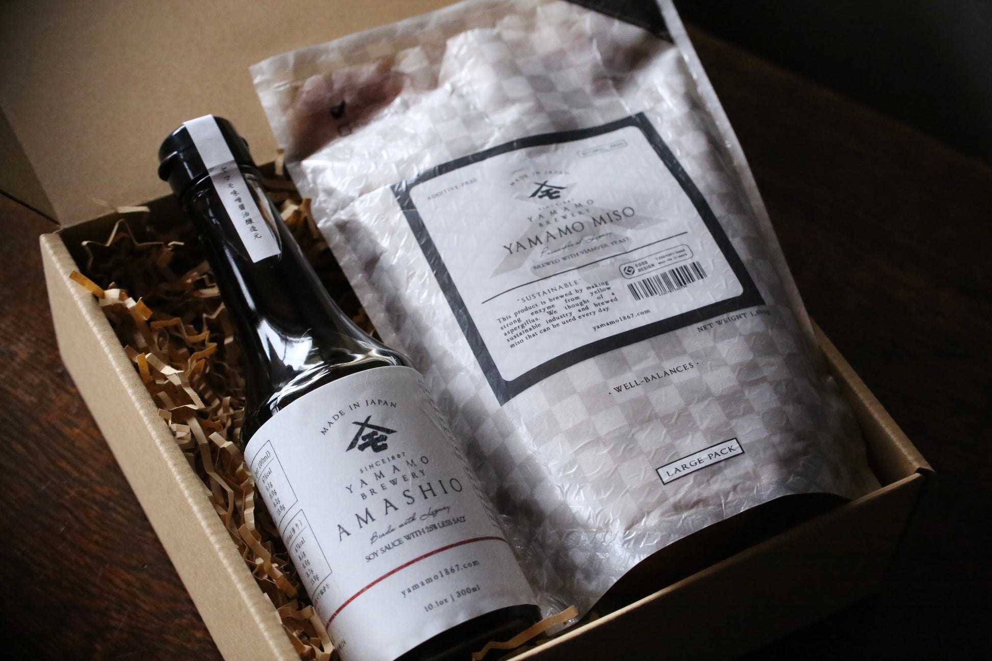内容:あま塩醤油 300ml、ヤマモ味噌 -スタンダード 1kg(つぶ)