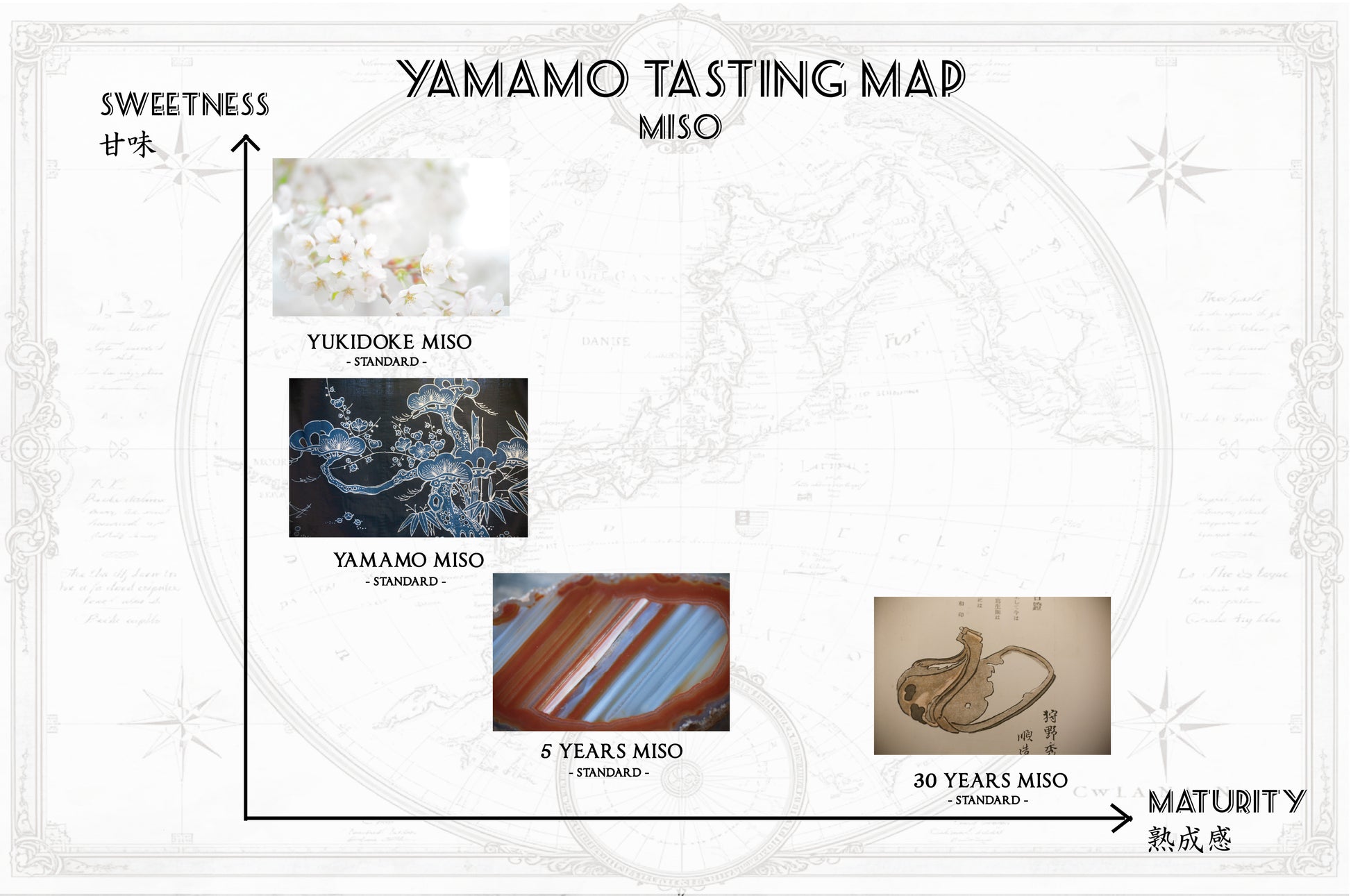 相性:味噌汁、煮込料理、鶏もも肉や鴨肉、タラやブリ、カマンベールチーズ、リンゴや洋梨