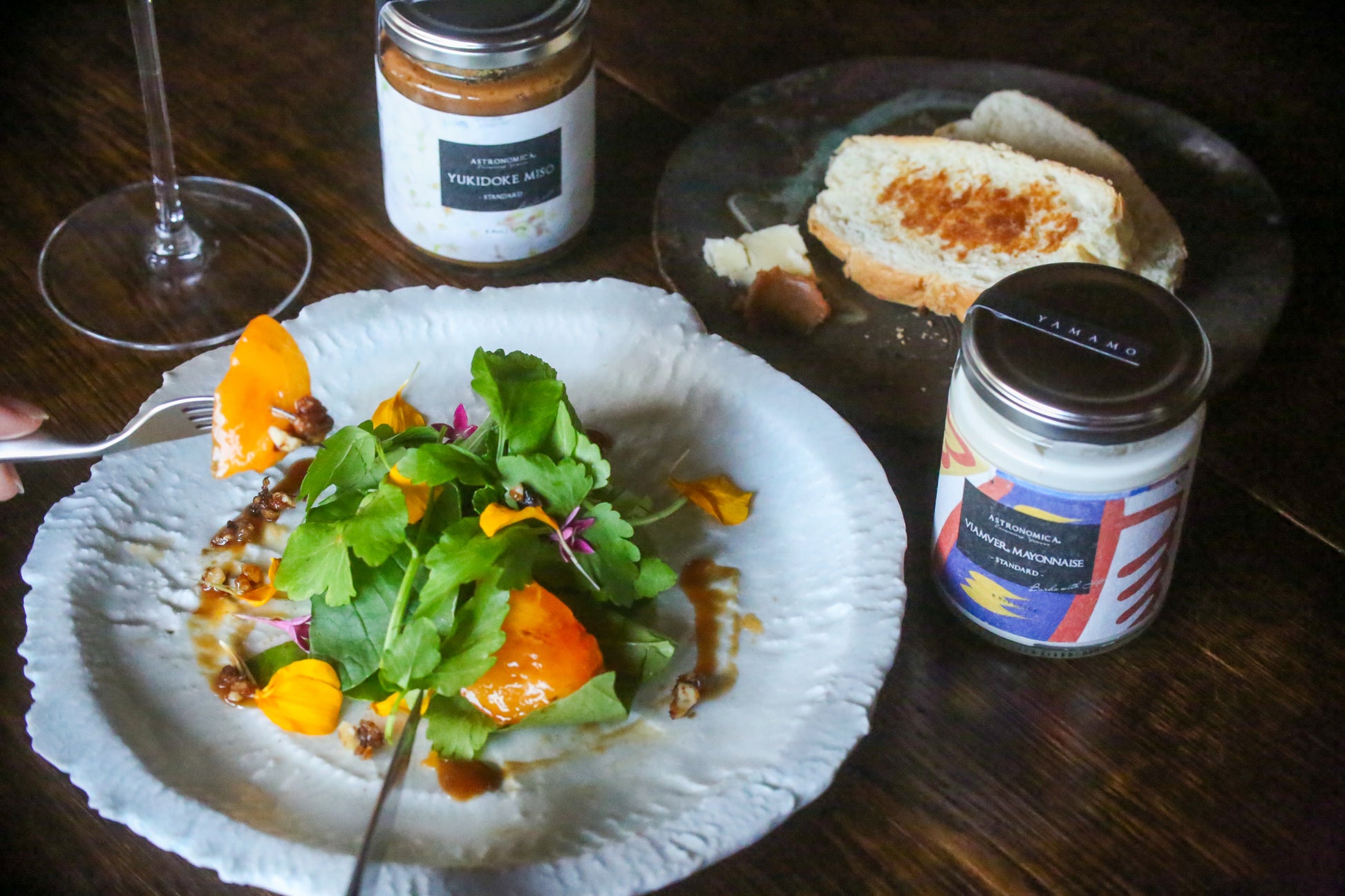 豆乳と米糀を中心に、『ヴィアンヴァー』による発酵のコクとうま味によって、植物性でありながら厚みのある味わいに仕上げました。塩分や油分、酸をできるだけ抑えることで、繊細でまろやかな風味を生み、料理に自然な品格を添えます。卵を使用していないため、ヴィーガンの方や卵アレルギーのある方も安心してお召し上がりいただけます。